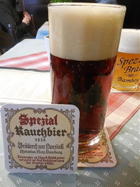 Ciemny lekko podwędzany koźlak z bamberskiego browaru Spezial. Wybłagany 5 minut przed zamknięciem w sobotę o... 14:00