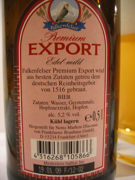 Butelka 0,5 litra NRW, alkohol 5,2 %, eks.brak, kapsel z ptaszkiem