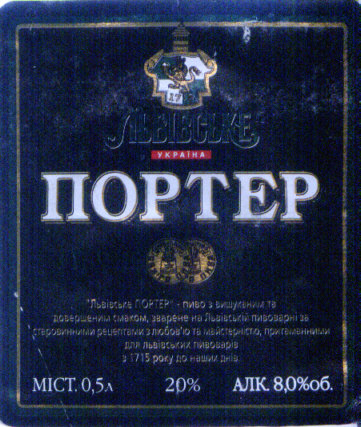 Produkcja browar we Lwowie. Butelka 0,5 l, 8,2%alk./20 ekstr.