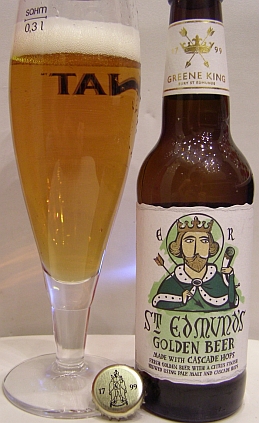Kolejne piwo w nowej stylistycznie odsłonie z GK. St Edmunds to golden ale, zaś święty Edmund to pierwszy patron Anglii. Według tradycji, będąc w IXw. królem wschodniej Anglii nie chciał ugiąć karku przed najeźdźcami, Duńczykami i zginął śmiercią męczeńską. Został pochowany w Beadoricesworth, czyli w obecnym Bury St Edmunds - w którym to mieście znajduje się browar Greene King.