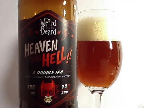 W Weird Beard lubią bawić się w piwne seriale. Mamy więc piwa o tym samym zasypie, a nawet tej samej wartości IBU, różniące się tylko chmielem dodanym na etapie cichej fermentacji. Taka właśnie jest seria podwójnych IPA ("Holy Hoppin' Hell) i taka jest też seria "Heaven And Hell" - ciekawsza, bo obejmująca te same podwójne IPA, ale dojrzewające w beczkach po burbonie (beczki pochodzą ze znanej amerykańskiej destylarni Heaven Hill, stąd nazwa piwa to swoista gra słów). Pomysł narodził się w 2013 r. Najnowsze piwo tej serii - uwarzone z dodatkiem chmieli Amarillo, Mosaic i Chinook - to szósta część serialu, która w wersji podstawowej double IPA gotowa była w lutym, a w wersji beczkowej właśnie teraz trafiła do sprzedaży (piwo leżakowało 6 miesięcy).