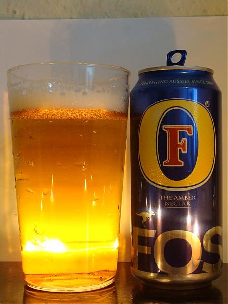 Opakowanie: ciemno niebieska puszka 0.44 z dużym, czerwonym "F" w jeszcze większym, żółto pomarańczowym, wypukłym "O", to do tego opalizuje na zielonkawo i błyszczy się, cuda nie widy, w dolnej części duży napis Foster's, a nad nim kangur [4.5]