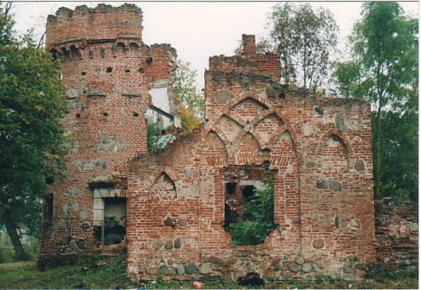 W tym palacu leżał ranny Kościuszko po przegranej bitwie, u stóp pałacu znajdują sie ruiny neogotyckiego pałacyku (na zdjęciu)
