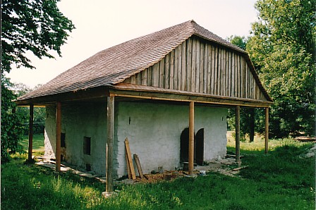 Niestety ale nie posiadam żadnych informacji na temat tego dworu oprócz tego że pierwotnie był zborem ariańskim. Dwór pochodzi z XVII w. Składa się z dwóch murowanych kondygnacji: piwnic i przyziemia, nakrytych szerokim dachem drewnianym. Dach, kryty gontem, wspiera się na 12 rzeźbionych słupach. Przyziemie stanowi jedna duża sala, sklepiona kolebkowo na której suficie mozna dostrzeć obecnie oryginalny rysunek/znak najprawdopodobniej Arian. Obecnie jest odnawiany, właściciel zamierza otworzyć w nim muzeum.
