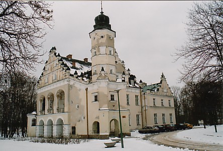 Późnorenesansowy pałac-willa, budowany od roku 1610 przez Z. Grudzińskiego, Wojewodę Rawskiego. Prostokątny układ budynku, z dostawionymi na narożach wieżami-alkierzami, nawiązuje do renesansowych dworów małopolskich. Najciekawszym elementem architektury są arkadowe krużganki. W Poddębicach w czasach oświecenia funkcjonował pod opieką księżnej Barbary Sanguszko, dawnej właścicielki obiektu, salon literacki. W roku 1873 pałac został gruntownie przebudowany przez rodzinę Zakrzewskich. Prawdopodobnie w zamku znajdują się jeszcze pozostałości starego, pochodzącego z XVI wieku dworu szlacheckiego. W dawnej kaplicy/muzeum niedawno odkryto freski które zostały wyeksponowane.