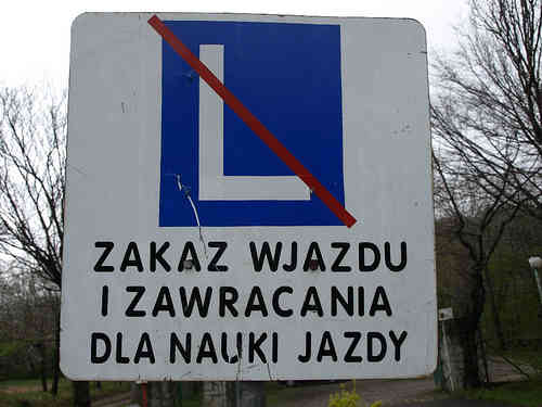 Dziś przez ładną minutę stałem na wąskiej, jednokierunkowej uliczce zablokowanej przez naukę jazdy usiłującą zaparkować w miejscu ze dwa razy dłuższym od jeżdzidełka L. Więc nie dziwię się takim znakom: