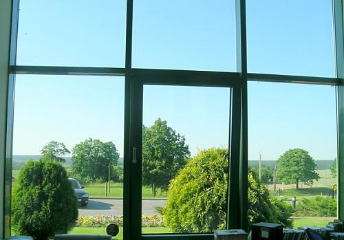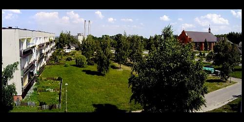 Zdjęcie nie oddaje zieloności widoku z okna, zrobiłem panoramę 180 stopni