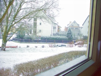 W domu widok mam już znacznie lepszy. Stół z komputerem przed którym siedzę ustawiony mam pod oknem (przodem do okna). widok wygląda następująco: duży zielony plac (choinki, wierzby płaczące, kasztan, orzech laskowy i włoski) z alejkami i ławeczkami. Za placykiem jednokierunkowa ulica po której rzadko coś przejeżdża. Po obu stronach ulicy stoją przedwojenne, zabytkowe, latarnie (które uwielbiam nocą). Po lewej stronie mojej kamienicy stoi mała biblioteka. Mam więc dookoła ciszę, spokój i zieleń. Uwielbiam wieczorkiem wyjść przed dom i popijając piwko usiąść sobie na ławeczce. Widok z mojego domowego okna a mój widok z pracy to ogień i woda. Z tegoż powodu męczę się w pracy i z przyjemnością wracam do domu na swoje podwórko