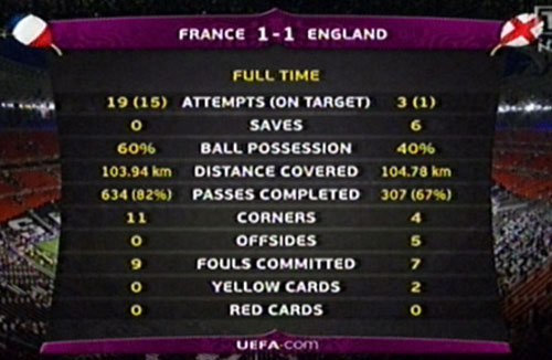 (powtórkę koniecznie oglądać w zwolnionym tempie). W drugim dzisiejszym meczu statystyki są bliższe końcowemu wynikowi. Jutro w końcu wybieram się na pierwszy mecz tych mistrzostw do knajpy.